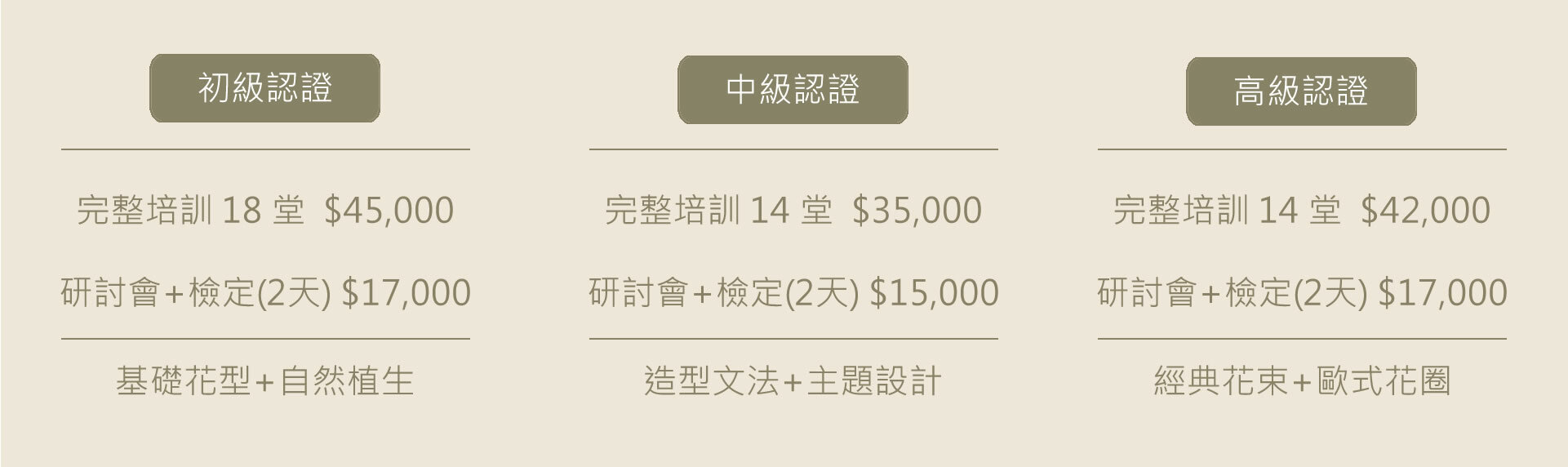 中級14堂,每堂2500元。