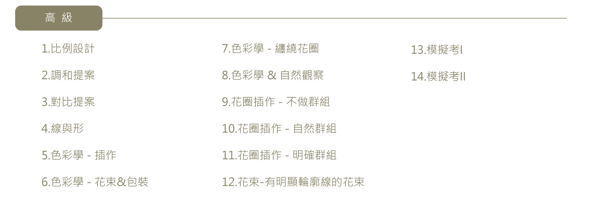 橋口學德式花藝證照分為初、中、高級三個階段。